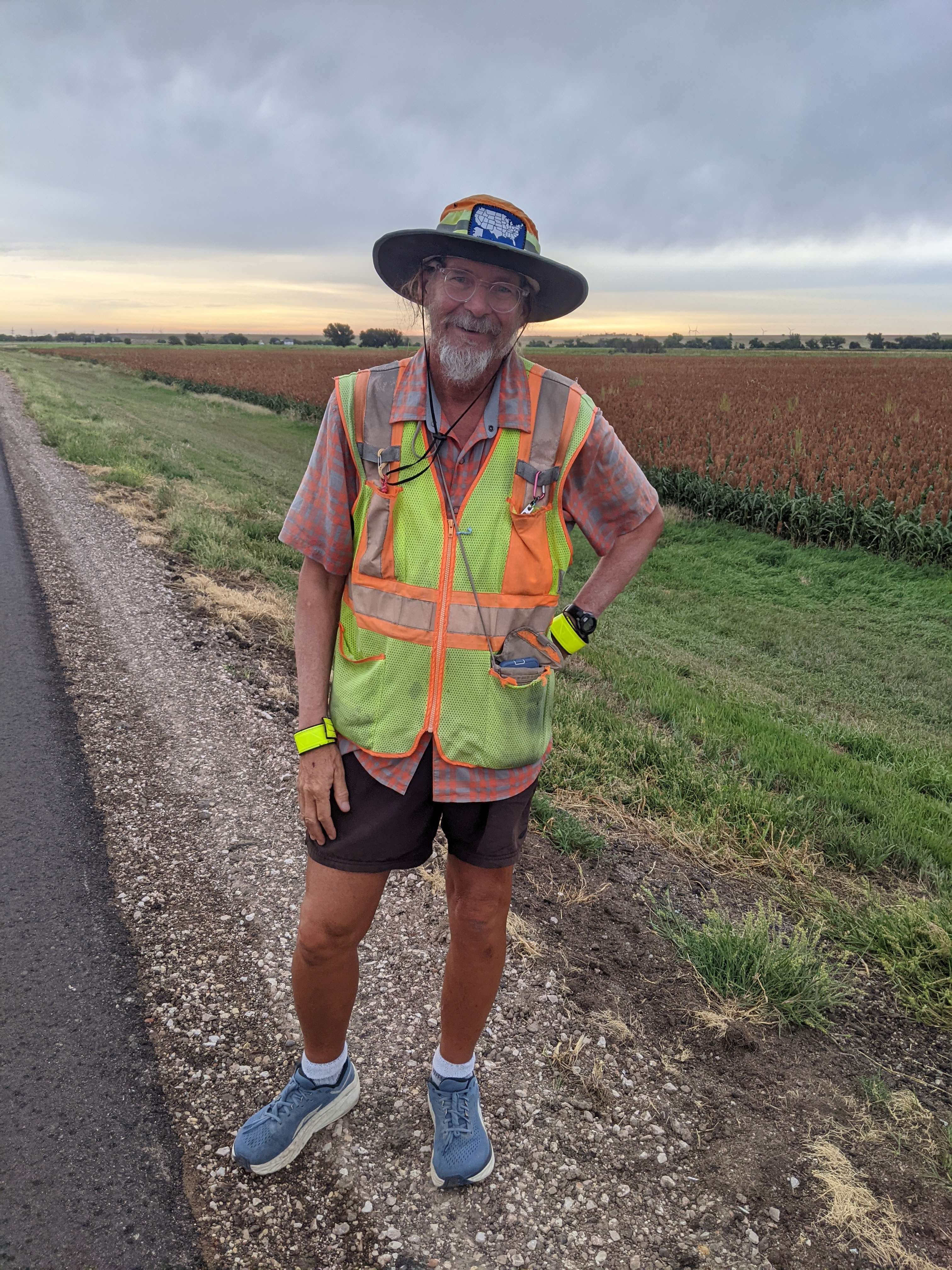There are always some people who are not quite as tough as you and others are much more so. On the informal Trail information network, I had heard about the German guy who had raced East to West on a bike and was now running back East. Anyway, I met him, Jonas, somewhere between Eads and Leoti, running along, pulling his possessions behind him in a cart. He was doing between 30 and 50 miles a day. He had travelled all over the world, cycling, running and walking, sponsored by companies like Shimano. To date, I have been able to empathise with most people I have met on my trip, but Jonas was definitely out of my league. I just couldn't imagine how you could do something like that. Obviously, standing at the side of the road, we couldn't explore that any further.
